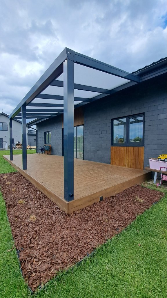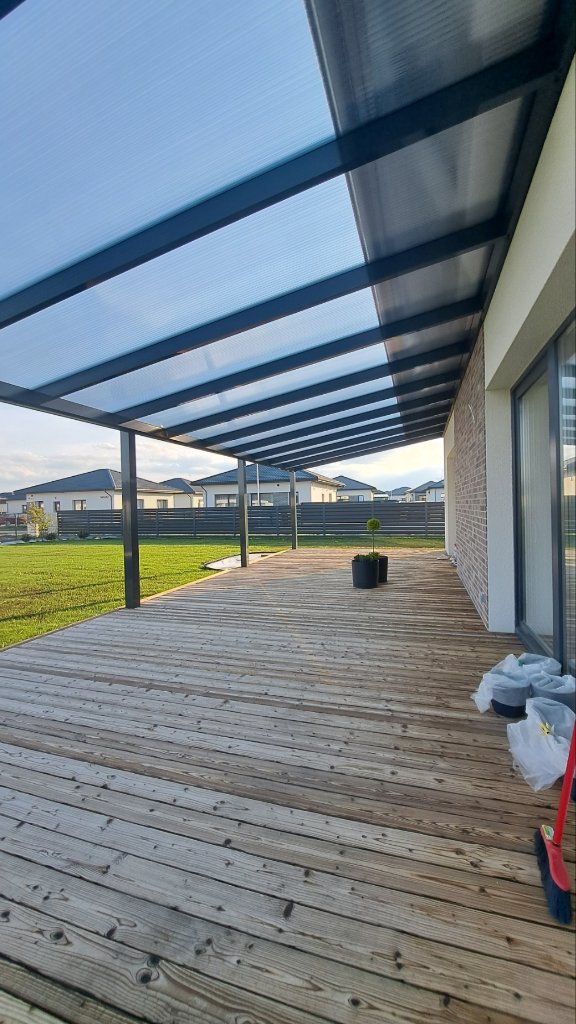 Siūlome įvairius aliuminio stoginių tipus: terasų stogines, automobilių stogines, įėjimo stogelius. Galime pagaminti pagal individualų dizainą arba pasiūlyti standartinių modelių.